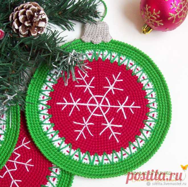 Вяжем крючком прихватку «Новогодний шар» - Ярмарка Мастеров - ручная работа, handmade