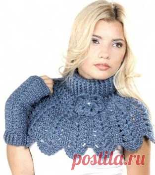 Пелерина и митенки крючком