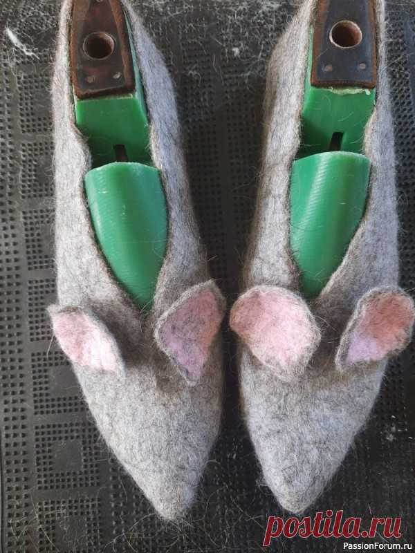 Тапки "Мышки". МК в картинках | Мастер классы по валянию из шерсти