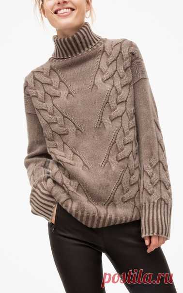 Вязаный джемпер с ажурной каймой со схемойАжурная кайма: вязать по схеме, на которой приведены только лицевые ряды, в изнаночных рядах накиды провязывать изнаночными. Провязать с 7-го по 58-й ряд.