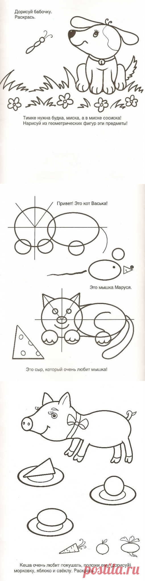 Уроки рисования: как нарисовать собаку, кошку, корову, козлика, поросенка - Поделки с детьми | Деткиподелки