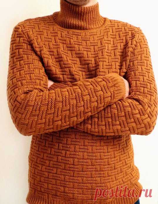 Мужской свитер с горлом: схема вязания спицами и описание Мужской свитер с горлом: схема вязания спицами и описаниеНа свитер 48-50 размера потребуется 400-450 граммов ниток следующего состава: 70% шерсть, 20% шелк, 10% полиамид, прямые спицы № 4-4,5, круговые спицы № 4, 40 см.Выкройка и схема вязания мужского свитера спицамиРезинка 2х2, основной узор