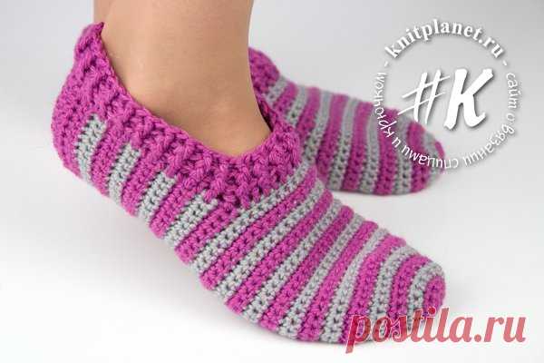 Планета Вязания | Простые тапочки крючком столбиками без накида. Мастер-класс по вязанию, в том числе видео