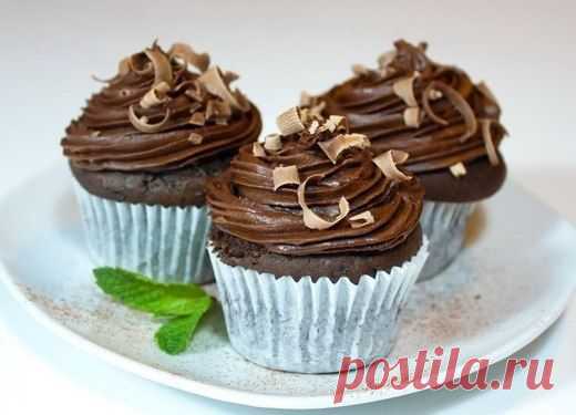 Шоколадные капкейки с шоколадным кремом.
