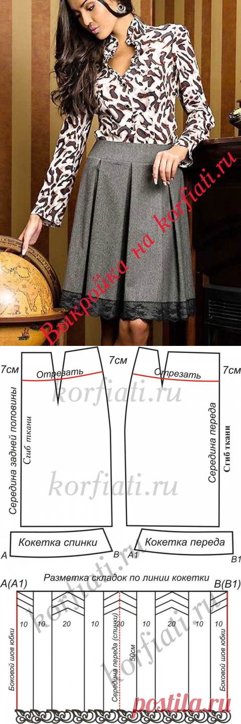 Юбка в складку на кокетке - выкройка процесс поэтапный шитья юбки от А. Корфиати