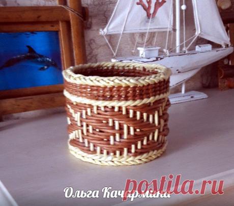 Плетение из газет. Интересный узор для корзинки. Мастер-класс