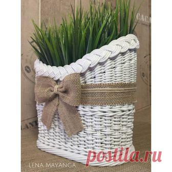 Кашпо и немного о закрытии послойного плетения. Добрый день всем плетущим !!! Хочу показать вторую попытку послойного плетения. Это кашпо или не кашпо, не знаю, что получилось. Думаю, может крышку сплести............Тогда будет не кашпо....... Посоветуйте, пожалуйста!!! Снизу попробовала небольшой ажур. МК здесь https://www.papirovepleteni.cz/fotoalbum/navody/navod-na-krizeni-ve-vrstve/. Трубочки из кромки газетной, покрашены вода+колер+лак.