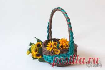 Плетение из газетных трубочек: Ручка для корзин, один из вариантов плетения.