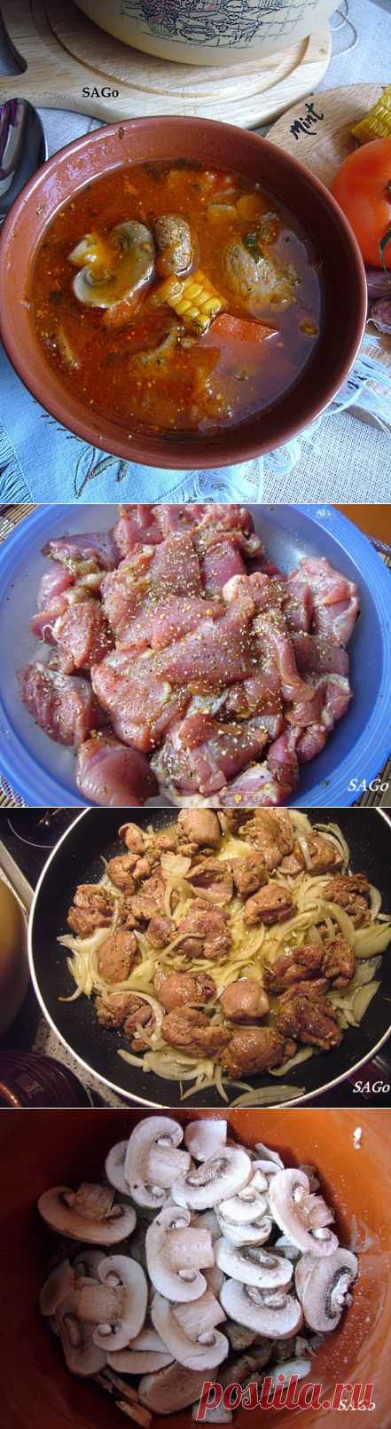 Свинина с овощами, запечённая в горшочке (почти чанахи)