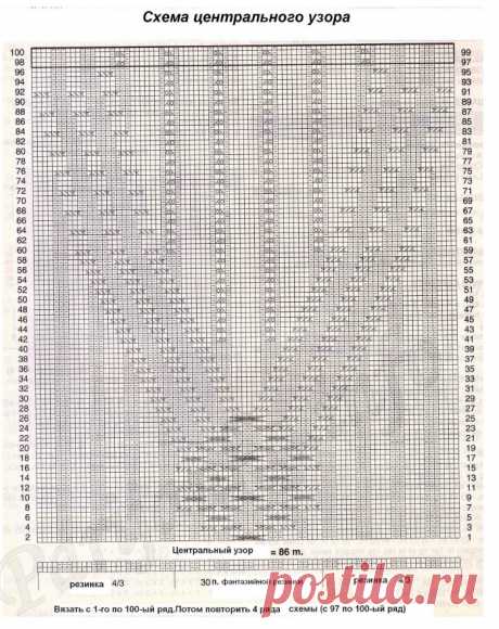 Сначала вяжем с 1-го по 4 -й ряды (их нужно повторить еще 4 раза), затем с 5-го по 26-й ряды(их повторяем до нужной длины)