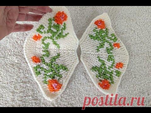 Вязаные тапочки "Ромашки"💥вяжем спицами