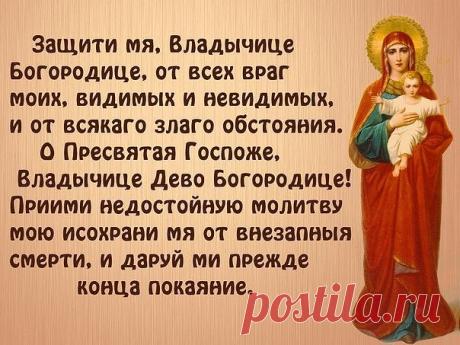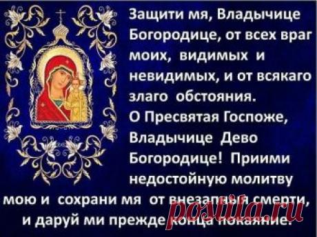 возьми под Свой покров семью мою, всели в сердца супруга моего (супруги моей) и чад наших мир, любовь и непрекословие всему доброму, не допусти никого из семьи моей до разлуки и тяжкаго расставания, до неисцельных болезней и преждевременныя и внезапныя смерти.