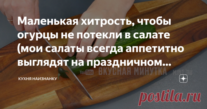 Маленькая хитрость, чтобы огурцы не потекли в салате (мои салаты всегда аппетитно выглядят на праздничном столе) Как приготовить вкусный салат и что я делаю, чтобы огурцы не потекли в салате.