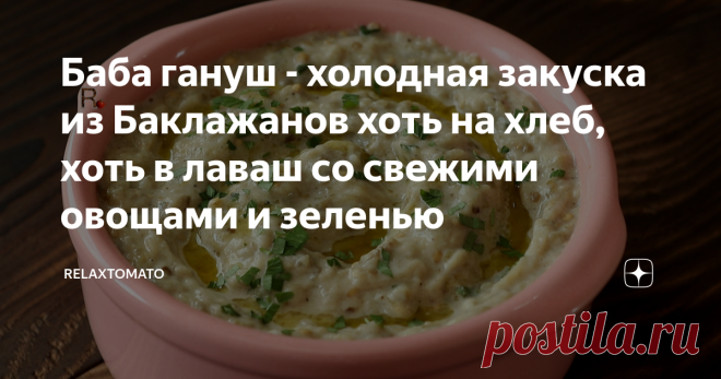 Баба гануш - холодная закуска из Баклажанов хоть на хлеб, хоть в лаваш со свежими овощами и зеленью