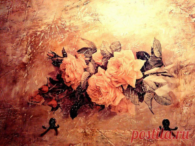 Ремонт своими руками.. Декоративная штукатурка с помощью обычной шпатлевки....+ эффект фрески с применением декупажной карты. Стена тонирована акриловыми красками и покрыта акриловым лаком.
