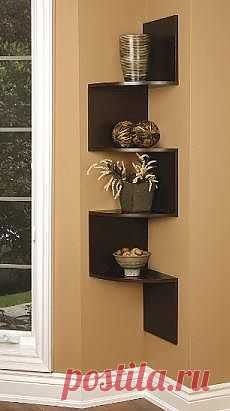 Corner Wall Mounted Shelf Unit in Dark Walnut Veneer | Home Interior Design Themes
