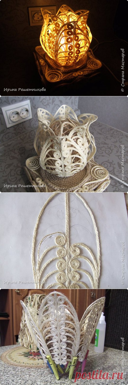 Джутовая филигрань.Светильник" Белый тюльпан". МК., 1 часть | Страна Мастеров