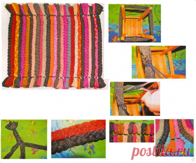 Коврик из косичек - Эфария Такой коврик можно смастерить не только из шерстяных ниток, но и из полосок ткани, свернутых в трубочку. Делается это довольно быстро: плетем косички, затем собираем их вместе — и вот уже замечательная обнова для ванной комнаты или прихожей готова! Материалы: шерстяная пряжа разных оттенков ножницы цыганская игла прочная нить для сборки (желательно капроновая) табуретка утюг