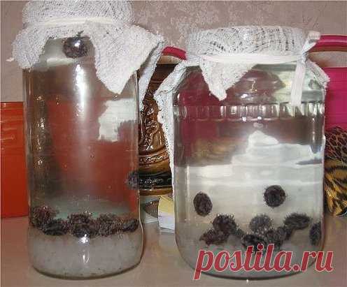 В литр кипяченной и охлажденной воды нужно засыпать 4 ст. л. риса (не рисовой сечки!), 3 ст. л. сахара и 5 изюмин черных.