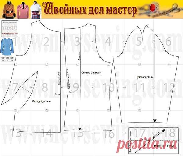 Женский пуловер. Бесплатная готовая выкройка.