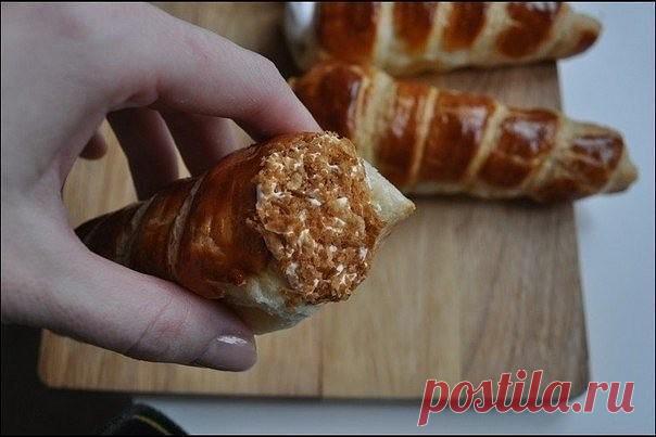 1. Каждую пластину слоеного теста раскатать до прямоугольника длиной около 27-30 см.
