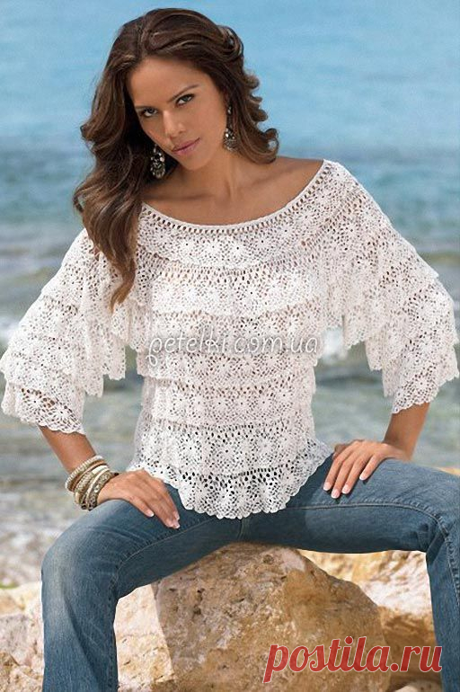 Красивая ажурная кофточка ярусами. Схемы вязания крючком