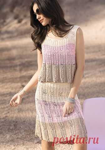 ЗАМЕЧАТЕЛЬНЫЙ ЛЕТНИЙ КОМПЛЕКТ: ТОП И ЮБКА С ИМИТАЦИЕЙ СКЛАДОК (Вязание спицами) | Журнал Вдохновение Рукодельницы
