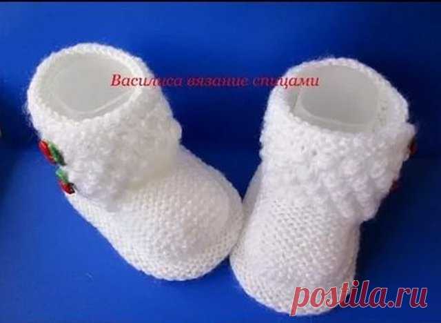 Беленькие пинетки спицами (видео-мастер-класс) | razpetelka.ru