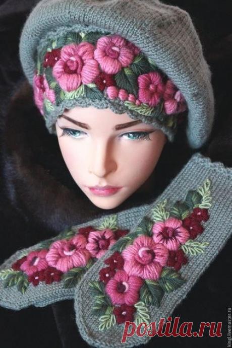 Берет, варежки и шарф