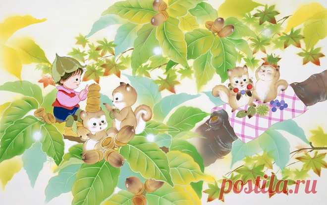 Животное иллюстрации осень, сказочные и животных, чтобы играть с реальными Murasakishikibu