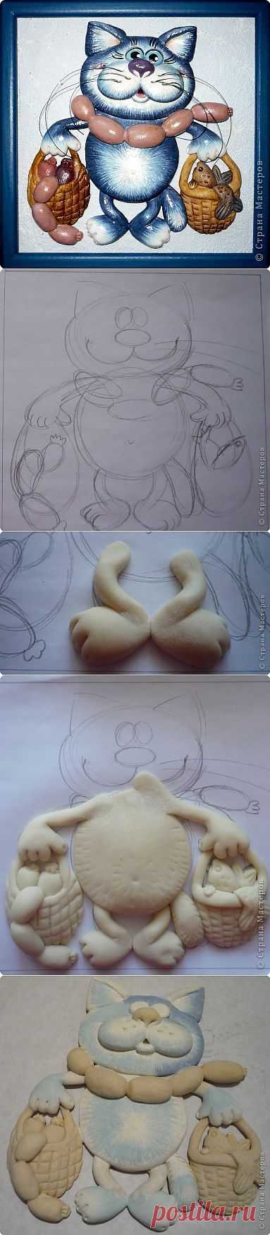 Кот с авоськами из соленого теста.