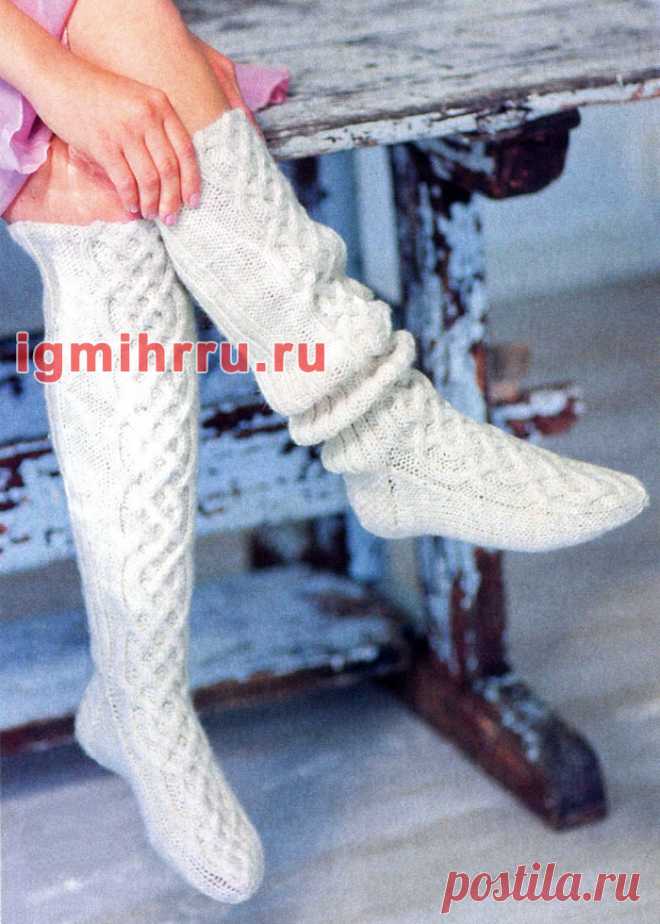 БЕЛЫЕ ГОЛЬФЫ С ПЛЕТЕНЫМ УЗОРОМ. Вязание спицами