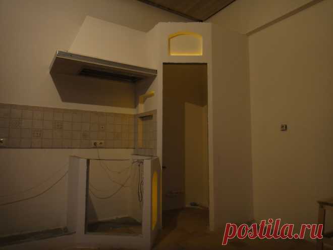 Индивидуальный проект встроенной мебели для кухни. В проекте использованы материалы: ГВЛ, стальной профиль Knauf, массив ясеня, искусственный камень, ламинированная МДФ плита.