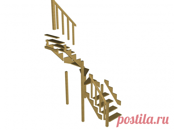 Визуализация общего вида междуэтажной лестницы. Сделано в bCAD.