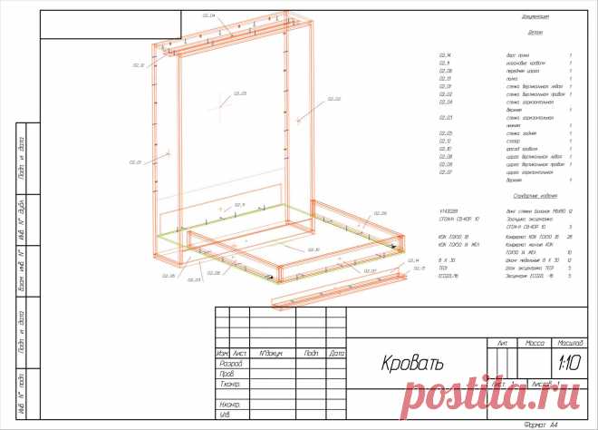 Комплект чертежей и документации для изготовления шкафа-кровати.