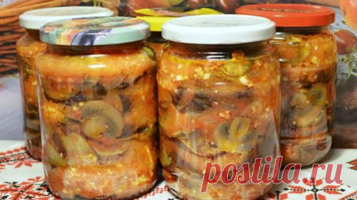 Рецепт салата из баклажанов и грибов на зиму. Получается сытным и вкусным!
