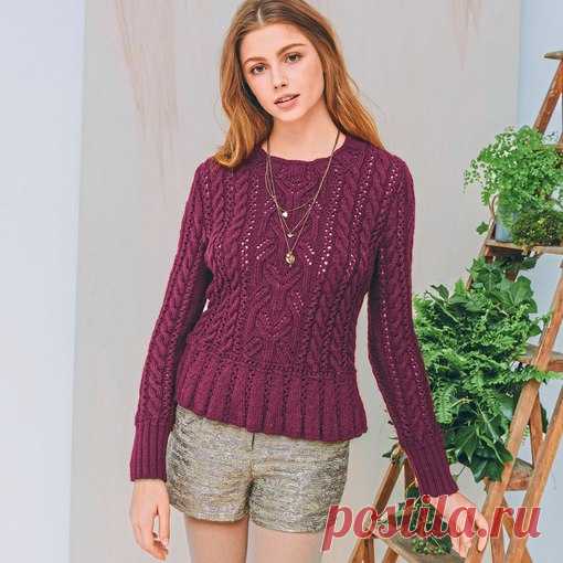 Фантастически красивый джемпер со складчатой баской и рельефными узорами — образец женственного стиля. РАЗМЕРЫ 34/36 (38/40) 42/44 (46/48) 50/52 Показать полностью…