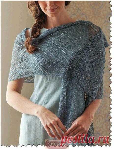Ажурный шарф - палантин с геометрическим рисунком на платочной вязке Длинный и объемный шарф-палантин вяжется очень быстро, так как все изнаночные ряды провязываются лицевыми петлями. Следить за рисунком требуется только в лицевых рядах.Размер изделия:40 см в ширину, 220 см в длину.Пряжа и спицы:Для шарфа-палантина потребуется 670 м / 170 г пряжи и спицы 4...