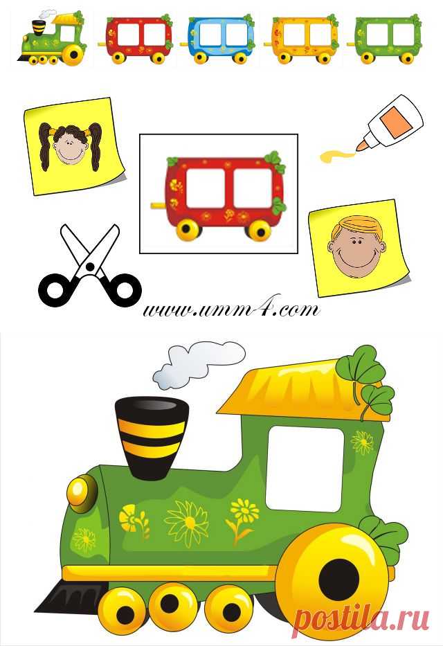 Аппликация "Паровозик с разноцветными вагонами" | Развитие детей. Онлайн игры. Сказки. Раскраски. Алфавит. Карточки. Математика. Здоровье