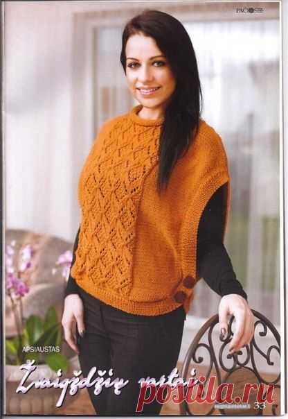МЕЛАНЖЕВЫЙ ОРАНЖЕВЫЙ ЖИЛЕТ ИЗ ТОЛСТОЙ ПРЯЖИ.