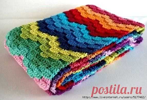 ШЕРСТЯНОЙ ПЛЕД ИЗ РАДУЖНЫХ МОТИВОВ.