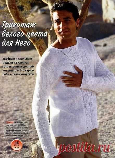 Мужской пуловер с жаккардовым узором. Вязание спицами.