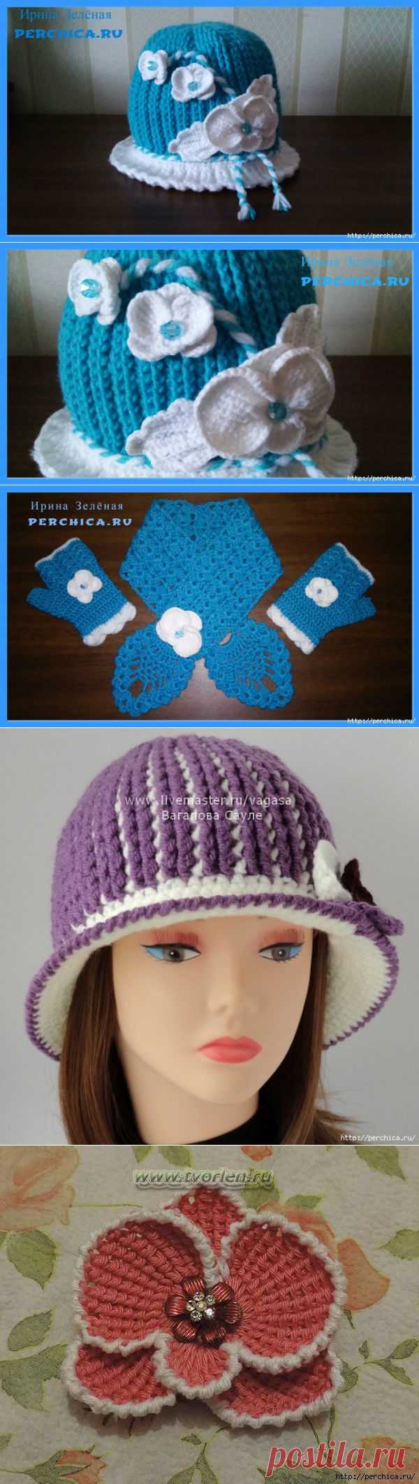Летние шляпки связанные крючком с цветами - много схем,идей и мк.