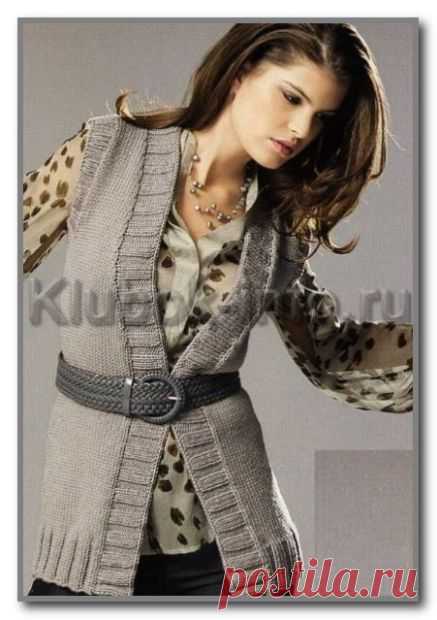 Жилет с декоративной булавкой спицами / Стильное вязание