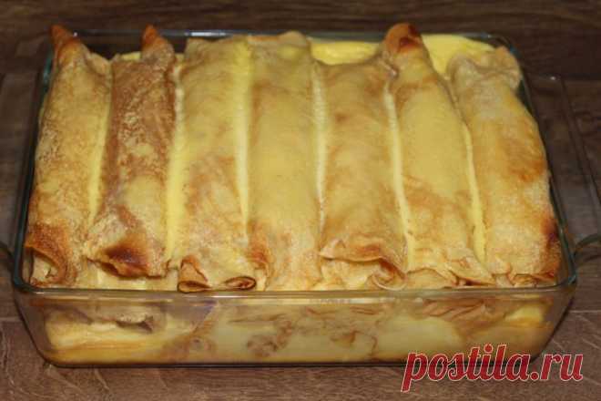 Держите себя в руках. Думаю, с такой начинкой и заливкой блинцы вы еще не пробовали