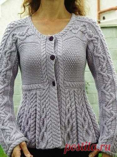 Плотность вязания спицами жакета: 21 п. и 28 р. = 10 х 10 см.