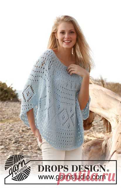 Вязаный спицами ажурный палантин "Милая Алисия" от Drops
