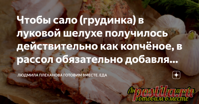 Чтобы сало (грудинка) в луковой шелухе получилось действительно как копчёное, в рассол обязательно добавляю этот «хитрый» ингредиент Уже давно отказалась от колбасы и делаю различные мясные закуски сама. Грудинка (сало) именно по этому рецепту получается с «оттенком копчёностей», хотя ничего коптить мы не будем. Это отличная мясная закуска не только на каждый день, но и на праздничный стол. Режем сало с прослойкой (грудинку ) на порционные куски размером 4 * 8 см. В каст...