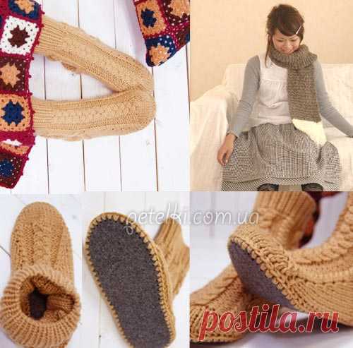 Домашние сапожки с косами. Схемы вязания, пояснение