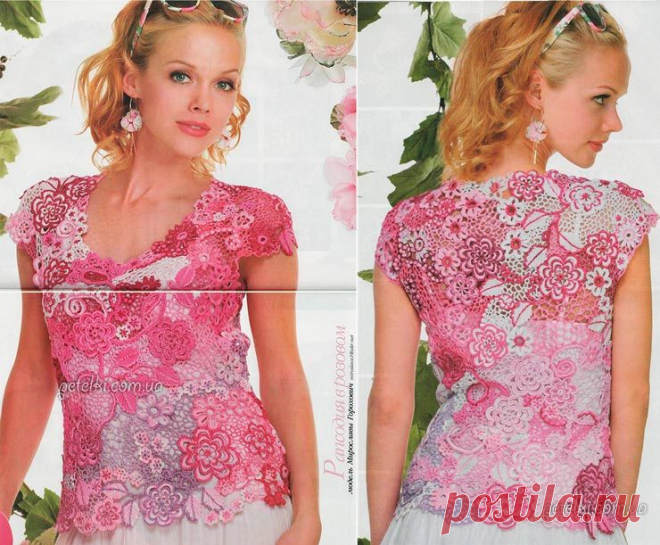 Ирландское кружево. Розовый топ. Описание, схемы, мастеркласс